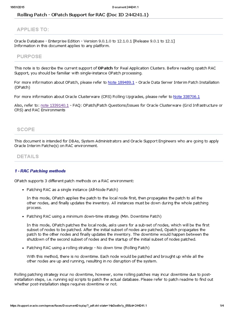 This note is to describe the current support of OPatch for Real Application Clusters. Before reading opatch RAC