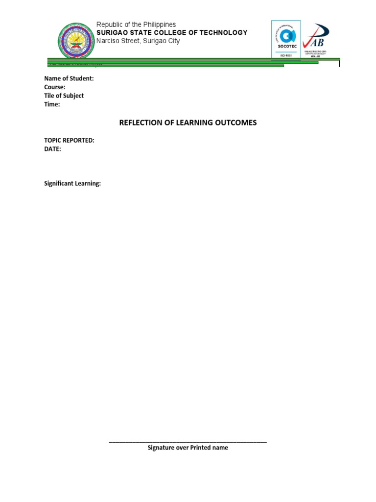 REFLECTION OF LEARNING OUTCOMES