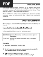 means that the copier does not produce hazardous laser radiation. For your safety, observe the precautions below.