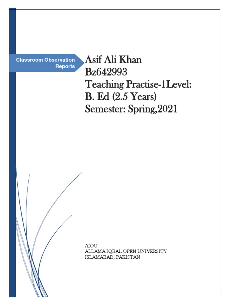 The following report is prepared during the observation Sadia Naz at Govt. Elementary school