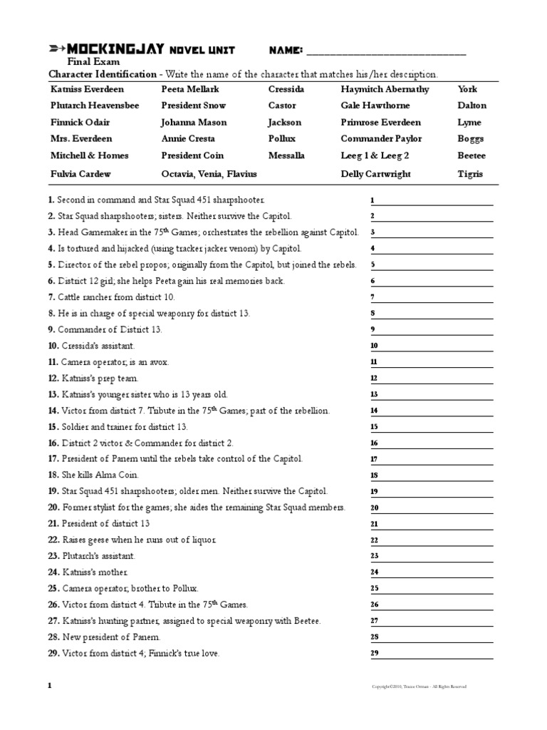 _____ 3. Katniss remembers this character several times throughout the novel, but especially when she is in