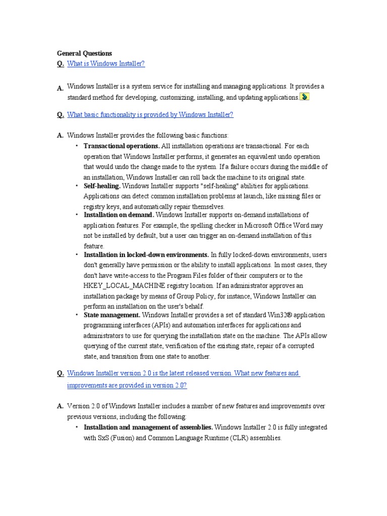 Q. Windows Installer version 2.0 is the latest released version. What new features and