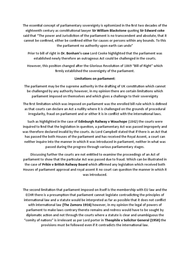 parliamentary sovereignty in the United Kingdom which runs in line with UK law moreover, the
