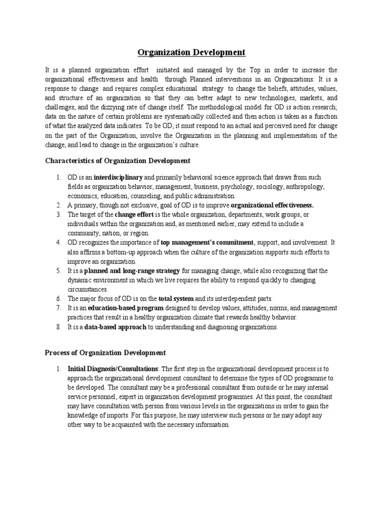 1. OD is an interdisciplinary and primarily behavioral science approach that draws from such