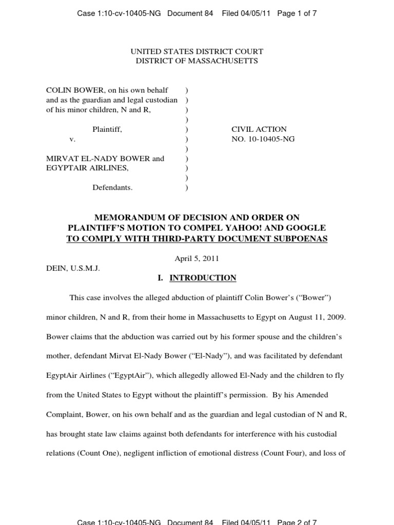Bower v. El-Nady Bower, 10-10405-NG (D. Mass. Apr. 05, 2011)