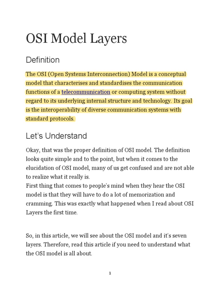 definition of the OSI Model has been already given above. In