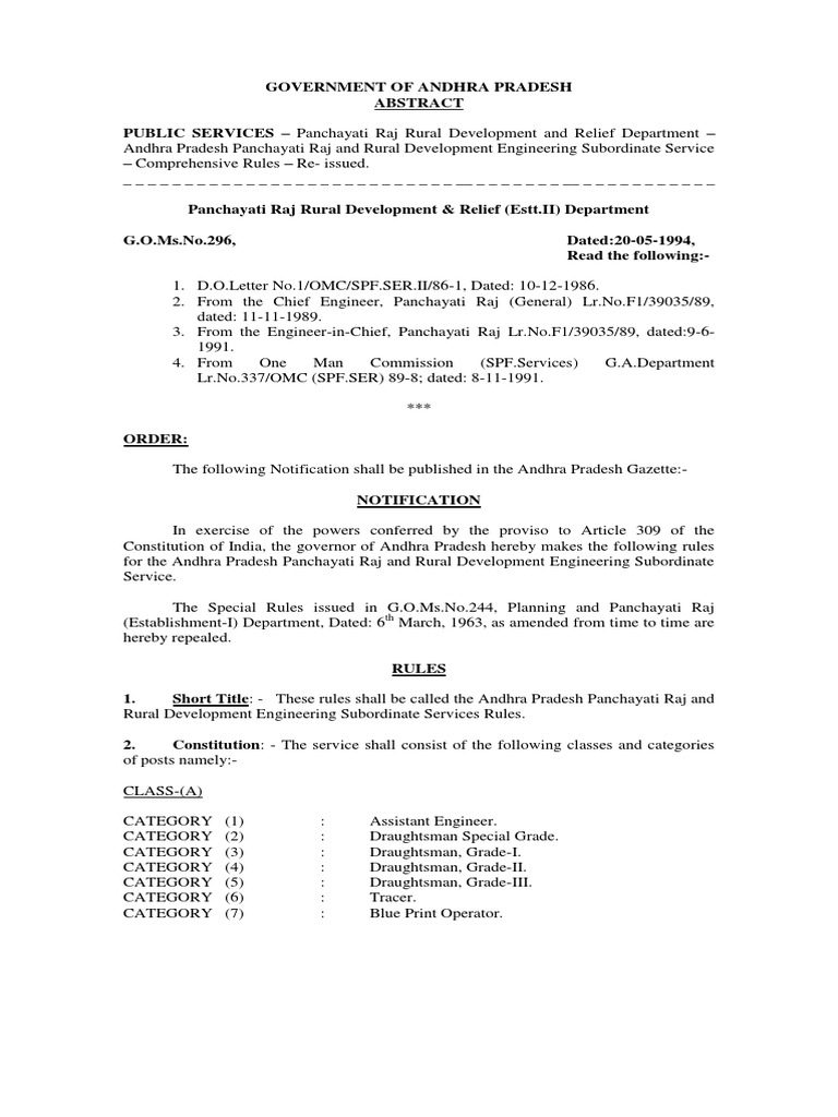 Andhra Pradesh Panchayati Raj and Rural Development Engineering Subordinate Service