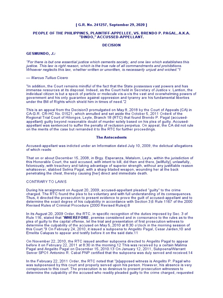 Regional Trial Court of Hilongos, Leyte, Branch 18 (RTC) that found Brendo P. Pagal (accused-