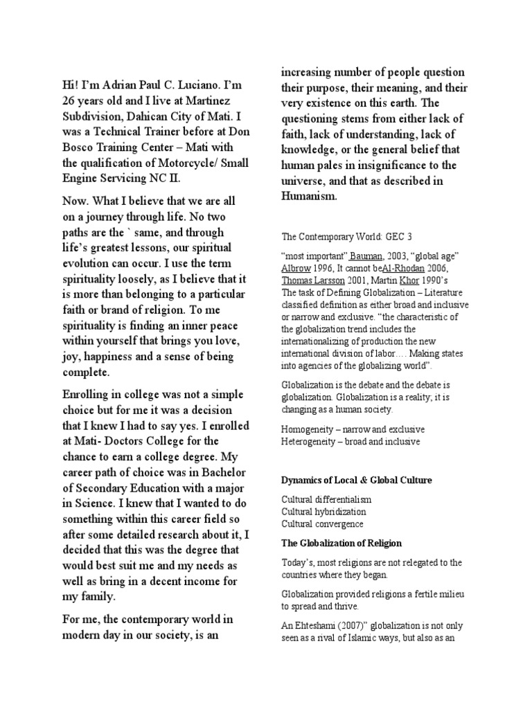 Enrolling in college was not a simple globalization. Globalization is a reality; it is