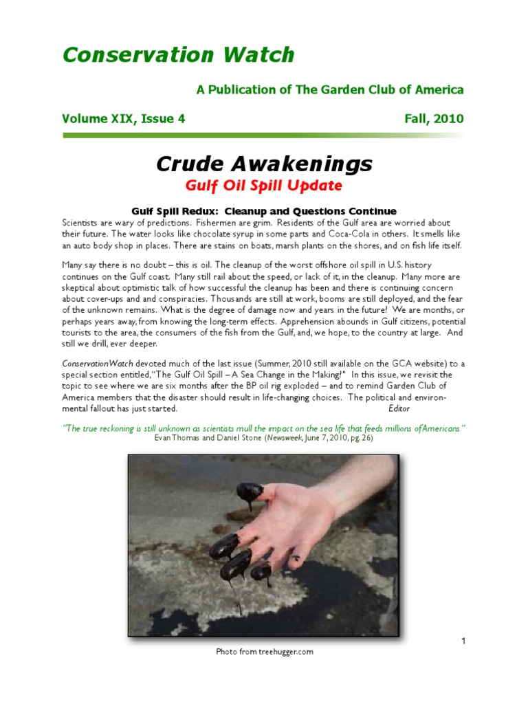 Conservation Watch, a publication of The Garden Club of America, is produced by the