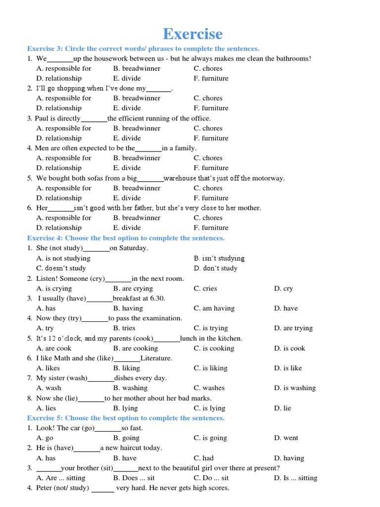 Exercise 3: Circle the correct words/ phrases to complete the sentences.