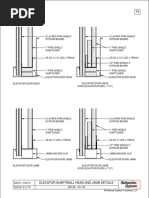 This document shows an elevator shaft enclosure plan with details. It includes a 2 hour shaftwall assembly with UL design U497. Steel J tracks are attached to 4x4 steel tubes and 30x6x1/2 inch steel plates. A guide rail bracket assembly is also shown with a 1 inch fire-shield shaftliner panel fastened to the steel J tracks.