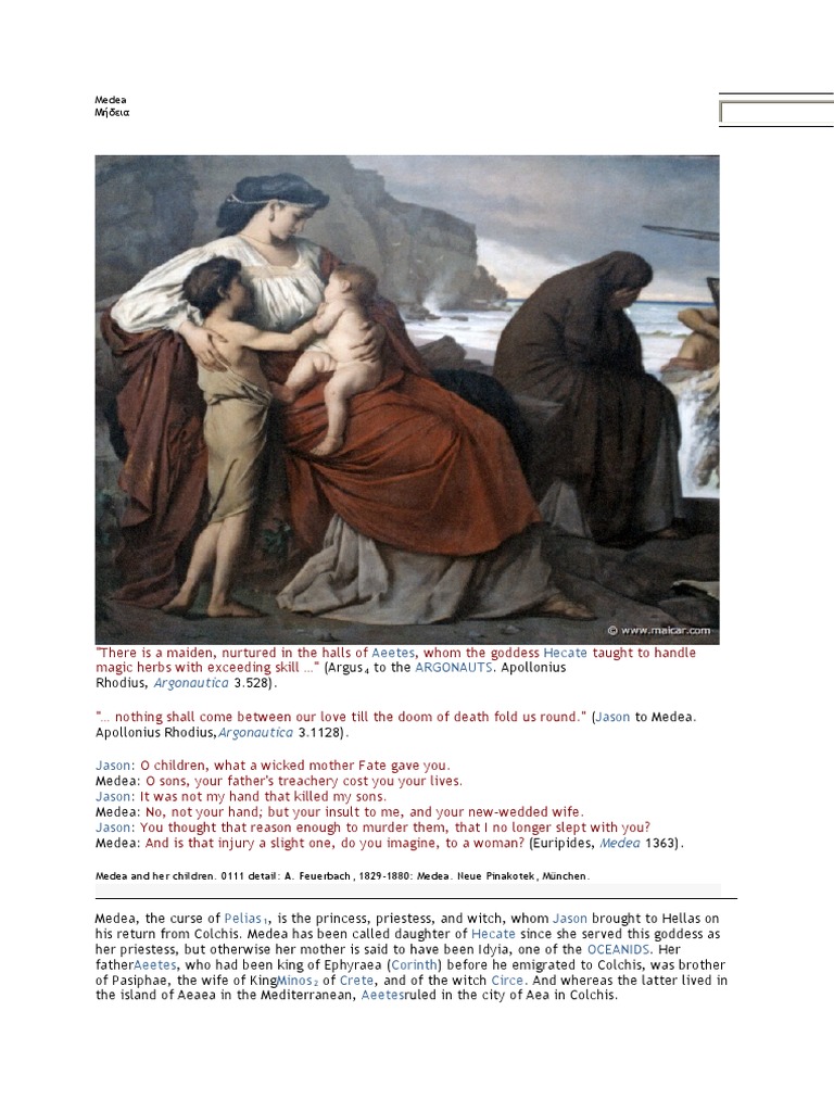 Medea, the curse of Pelias 1, is the princess, priestess, and witch, whom Jason brought to Hellas on