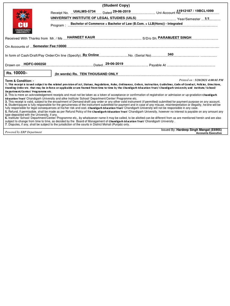 1. This receipt is issued subject to the related provision of Act, Statues, Regulations, Rules, Ordinances, Orders, Instruction, Guidelines, Code of Conduct, Policies, Directions,