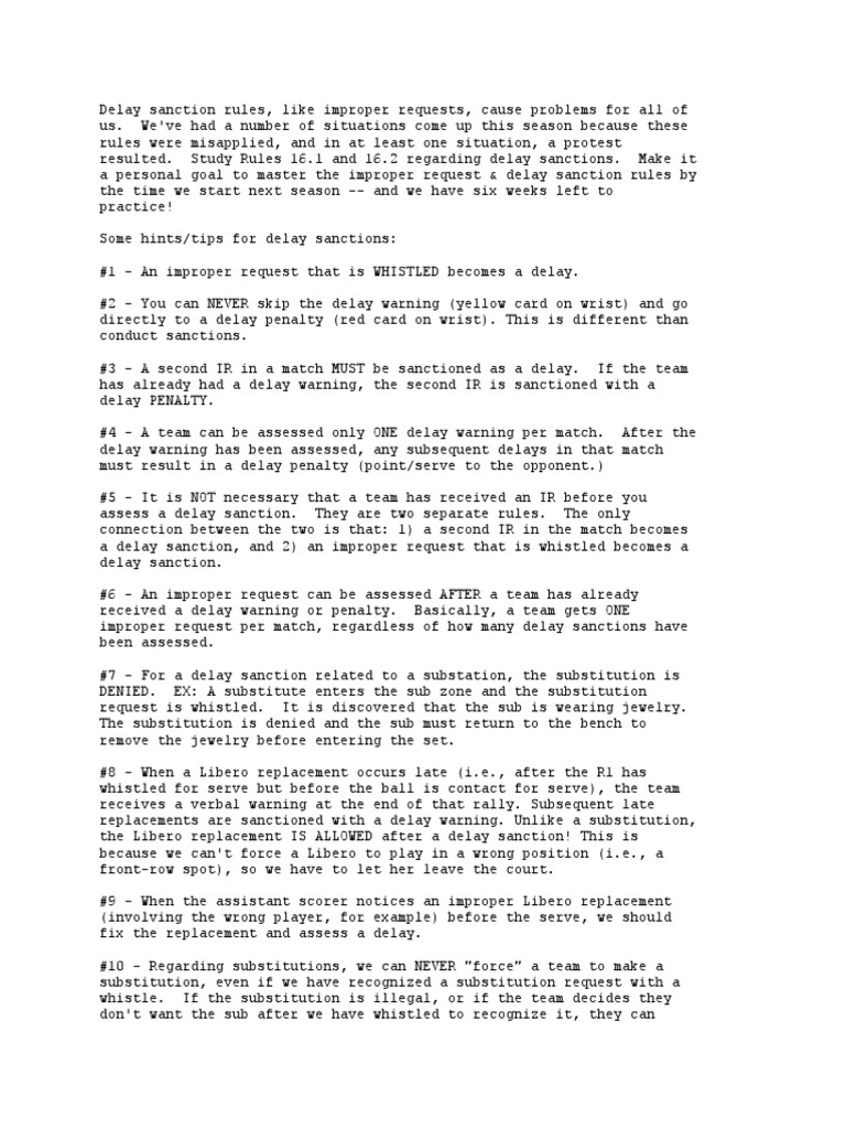 a delay sanction, and 2) an improper request that is whistled becomes a