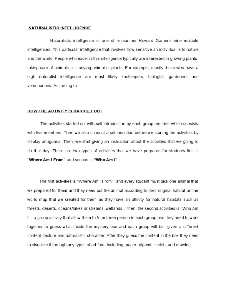 intelligences. This particular intelligence that involves how sensitive an individual is to nature
