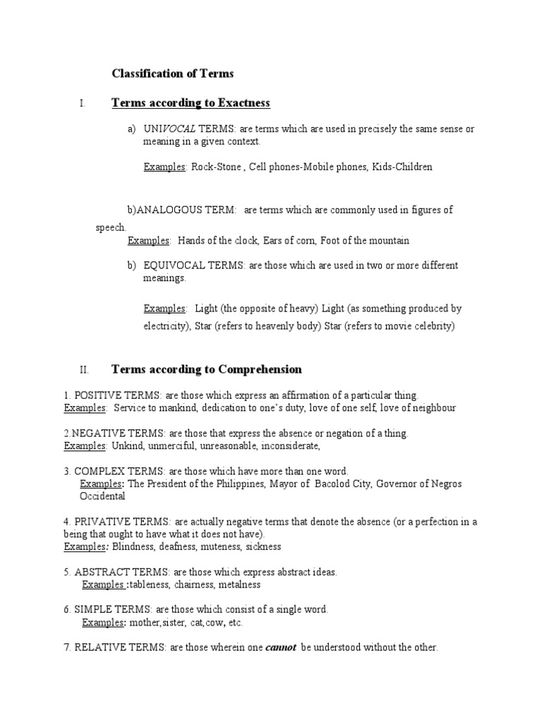 1. POSITIVE TERMS: are those which express an affirmation of a particular thing.