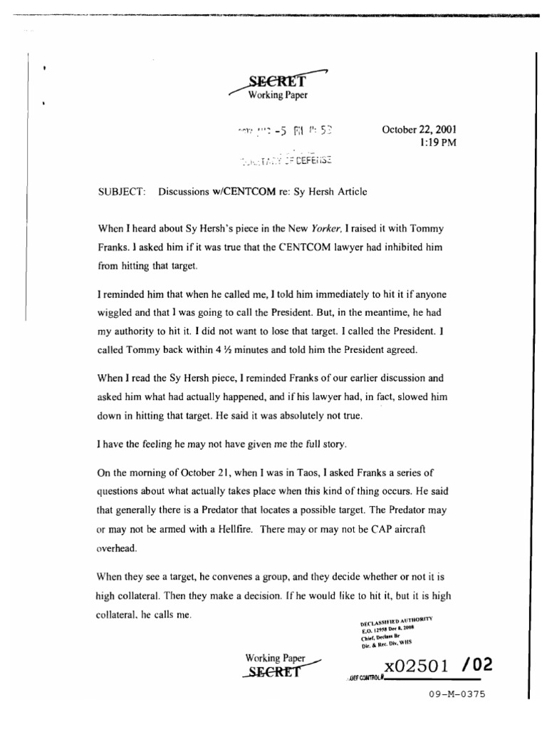 SUBJECT:Discussionsw/CENTCOMre:SyHershArticleOctober