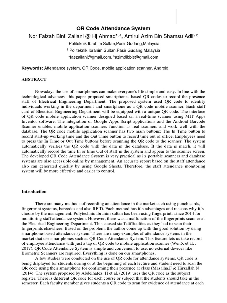 2017). QR Code Attendance System is simple and convenient to use, no external devices like
