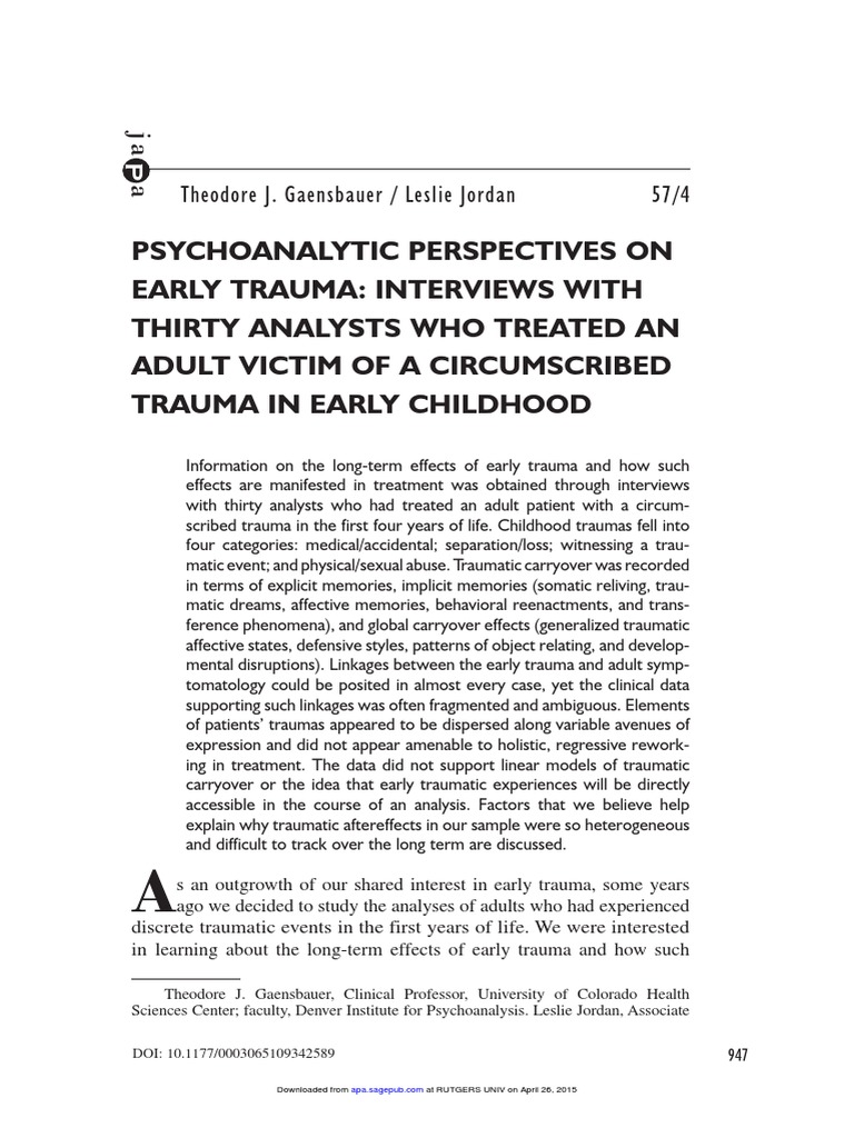 PSYCHOANALYTIC PERSPECTIVES ON EARLY TRAUMA