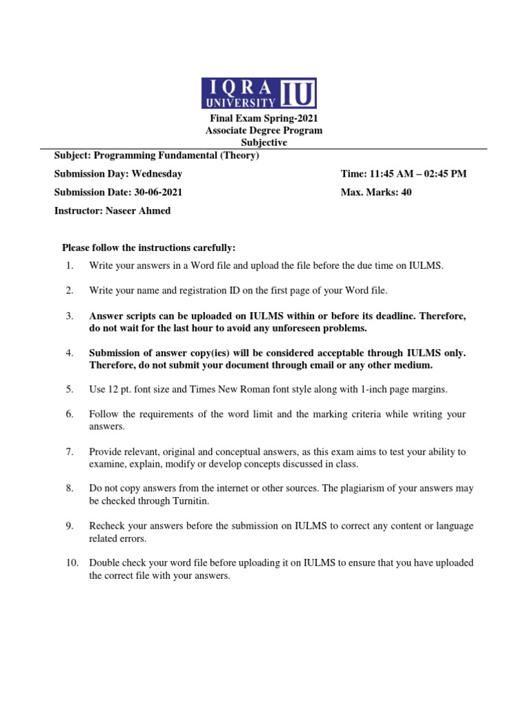 9. Recheck your answers before the submission on IULMS to correct any content or language