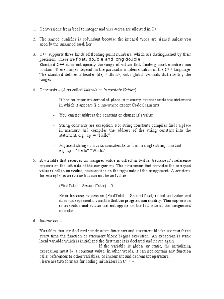 contain. These ranges depend on the particular implementation of the C++ language.