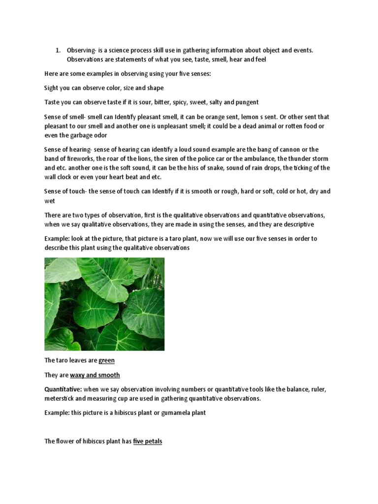 Example: look at the picture, that picture is a taro plant, now we will use our five senses in order to