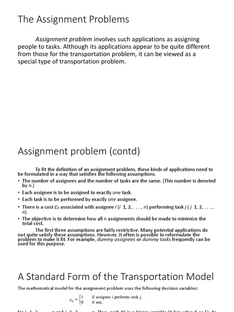 • There is a cost cij associated with assignee i (i 1, 2, . . . , n) performing task j ( j 1, 2, . . . ,