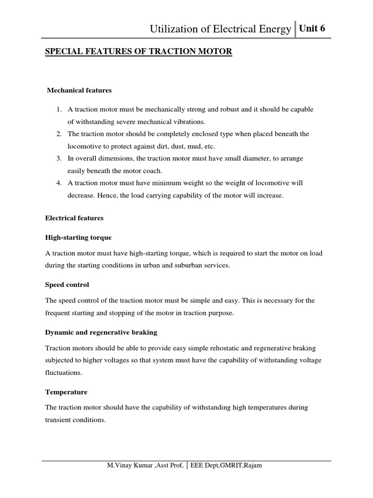 1. A traction motor must be mechanically strong and robust and it should be capable