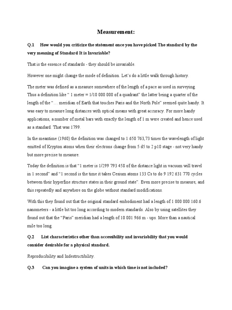 Q.1 How would you criticize the statement once you have picked The standard by the