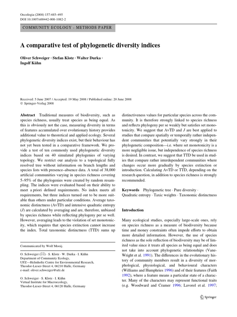 O. Schweiger (&) · S. Klotz · W. Durka · I. Kühn Wright et al. 1991). The diVerences in the evolutionary his-