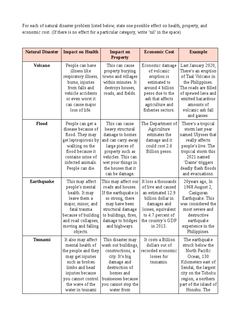 Natural Disaster Impact on Health Impact on Economic Cost Example