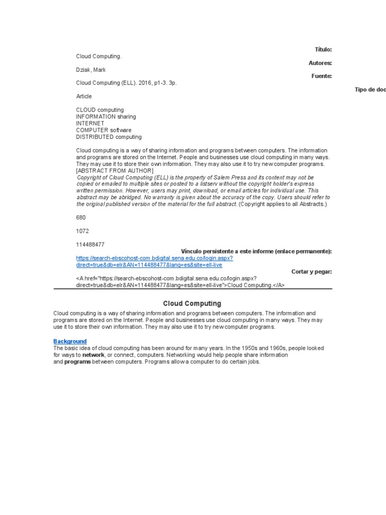 Copyright of Cloud Computing (ELL) is the property of Salem Press and its content may not be copied or