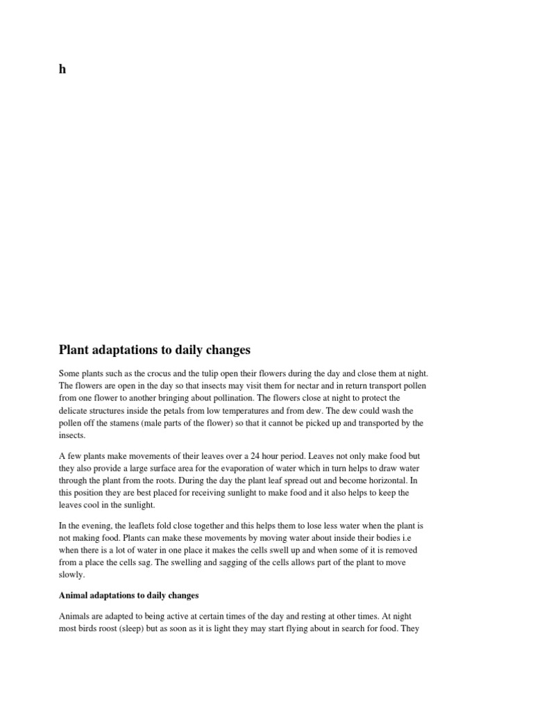through the plant from the roots. During the day the plant leaf spread out and become horizontal. In