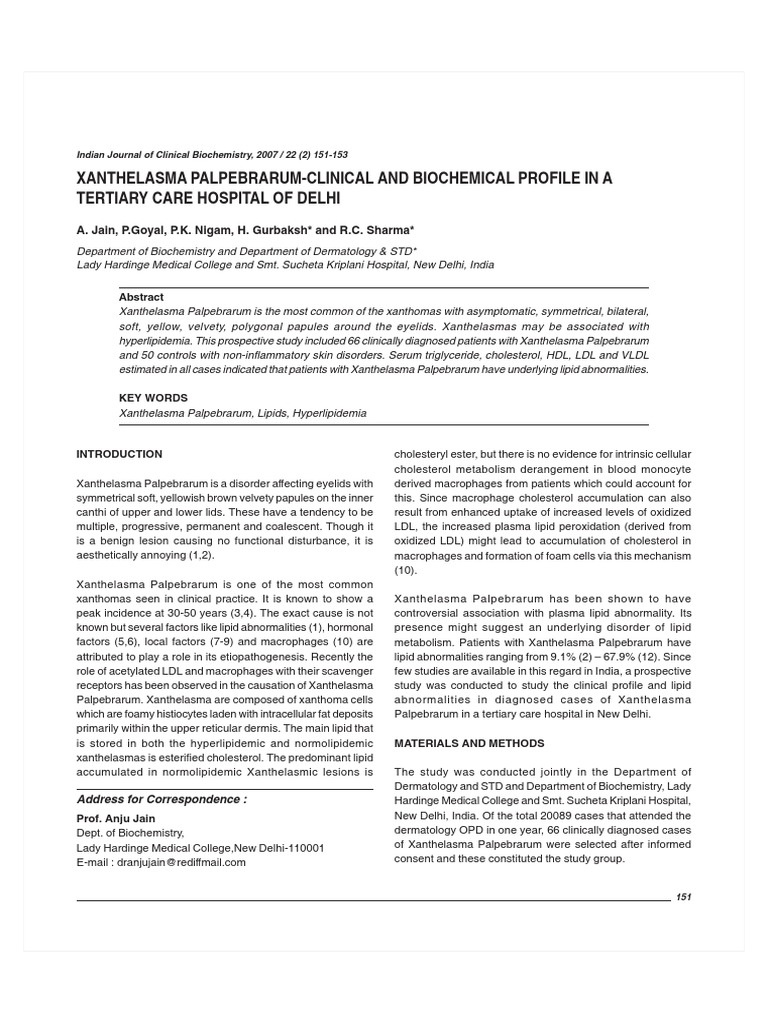 Xanthelasma Palpebrarum patients (mean =40.5mg%) and 3. Chhetri MK, Chowdhary ND, De B. Xanthelasma