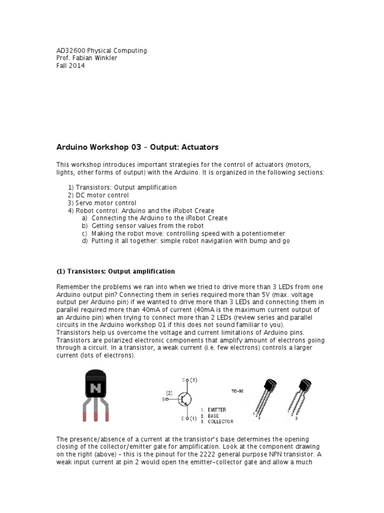 lights, other forms of output) with the Arduino. It is organized in the following sections:
