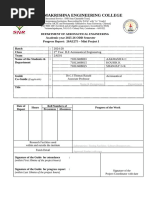 This document appears to be a monthly syllabus coverage report from the Department of BSc Aeronautics at Wings College of Aviation Technology in Pune. It tracks the date, time, subject code, unit number, topic covered and any remarks for classes on a given subject for a semester. The report is to be signed by the faculty member.