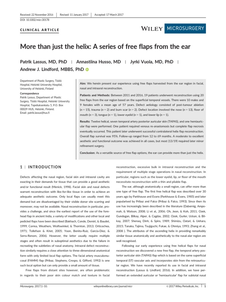 For nasal reconstruction, the nasolabial facial vessels were nearly Lassus, P. & Lindford, A. J. (2016). Free temporal artery posterior auricu-