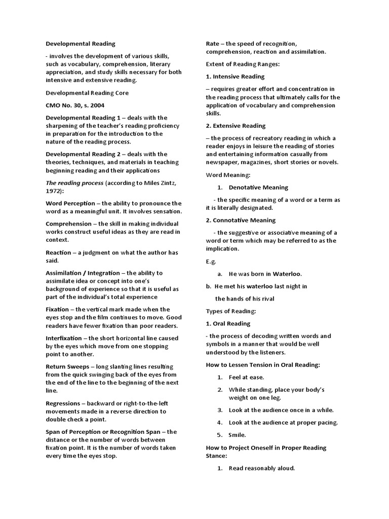 Developmental Reading 1 – deals with the