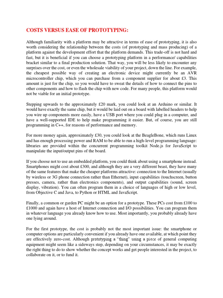 COSTS VERSUS EASE OF PROTOTYPING: