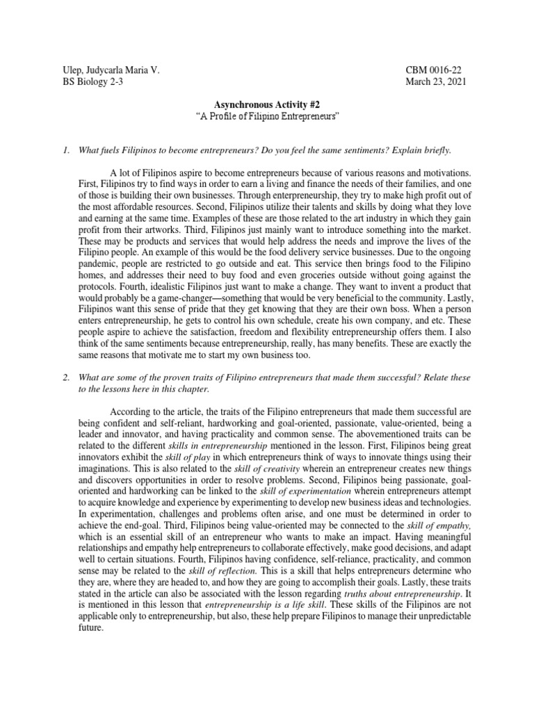 2. What are some of the proven traits of Filipino entrepreneurs that made them successful? Relate these