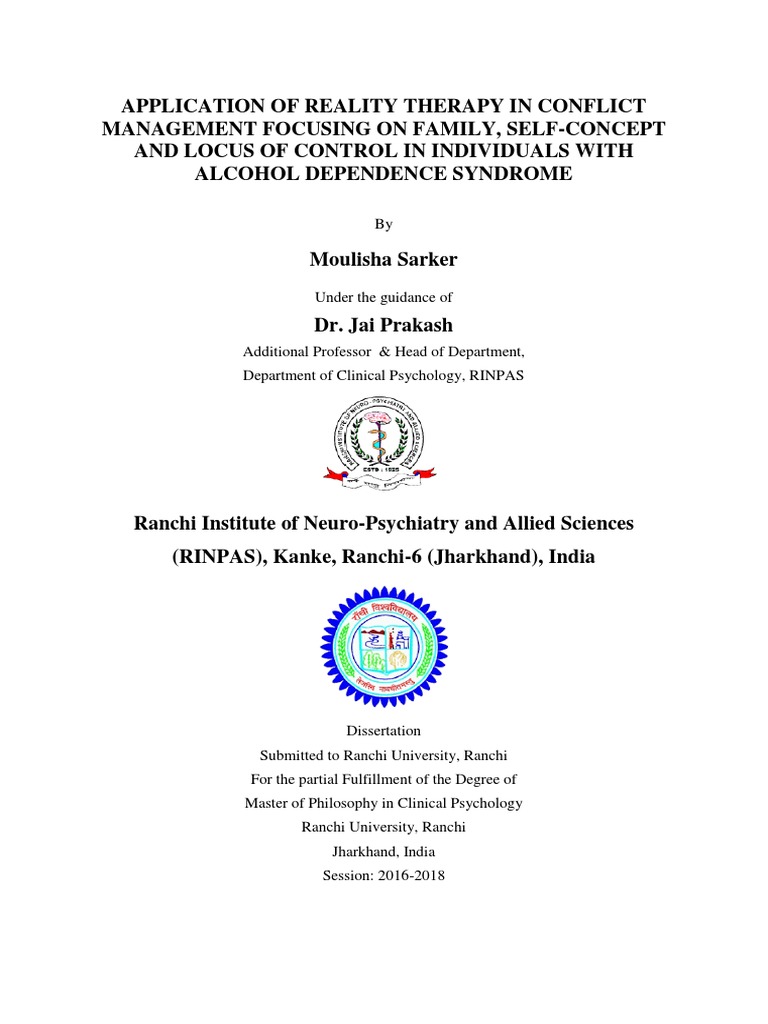 Studies on the application and efficacy of Reality Therapy on issues with alcohol dependence