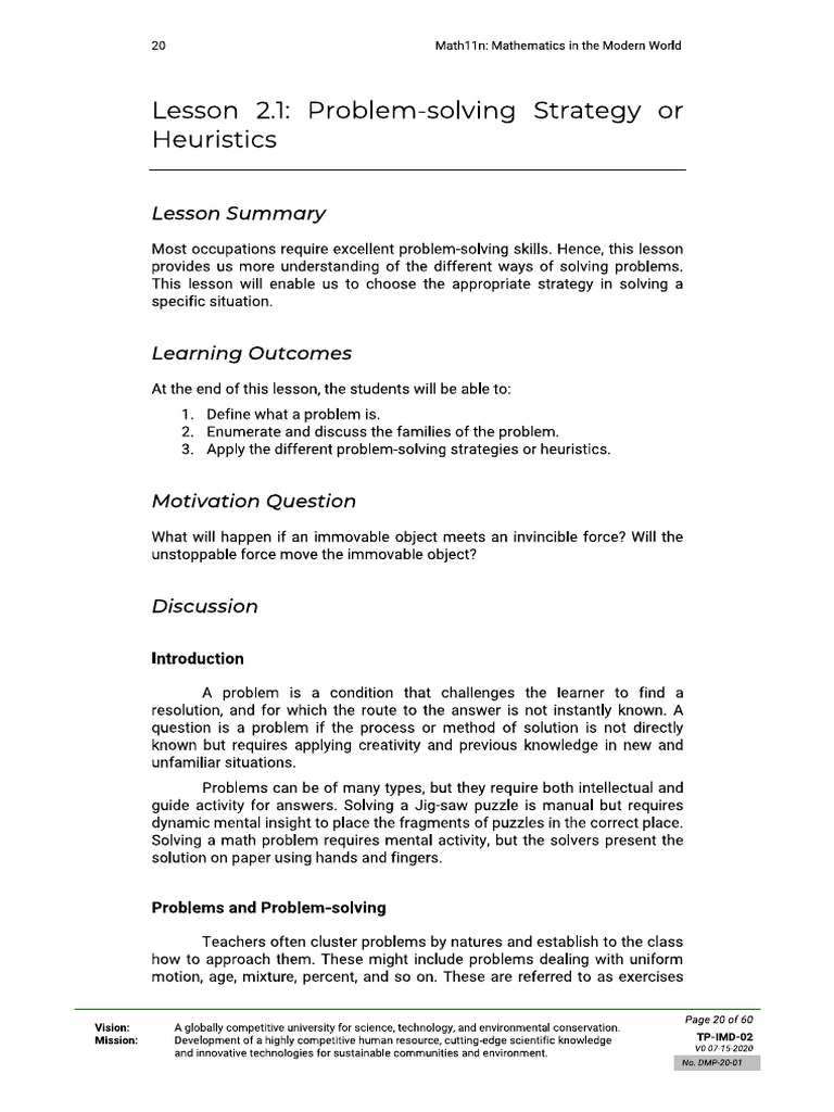 Lesson 2.1: Problem-solving Strategy or