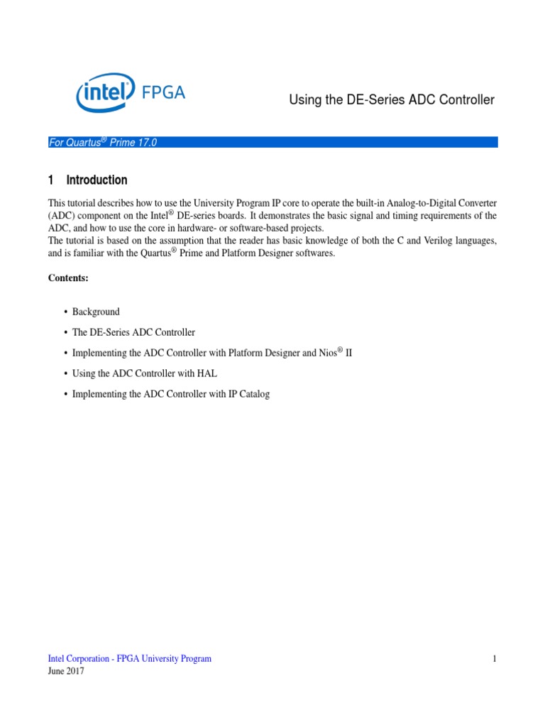 U SING THE DE-S ERIES ADC C ONTROLLER For Quartus® Prime 17.0