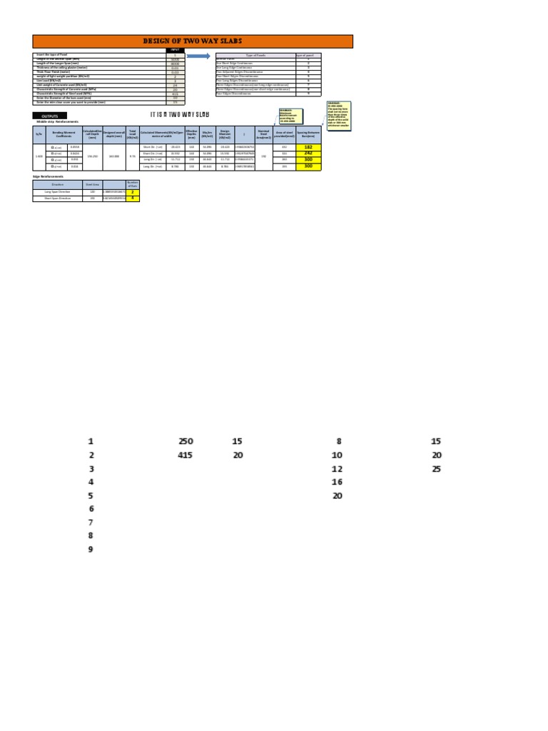 Charactristic Strength of Steel used (MPA) 415 Four Edges Discontinuous 9