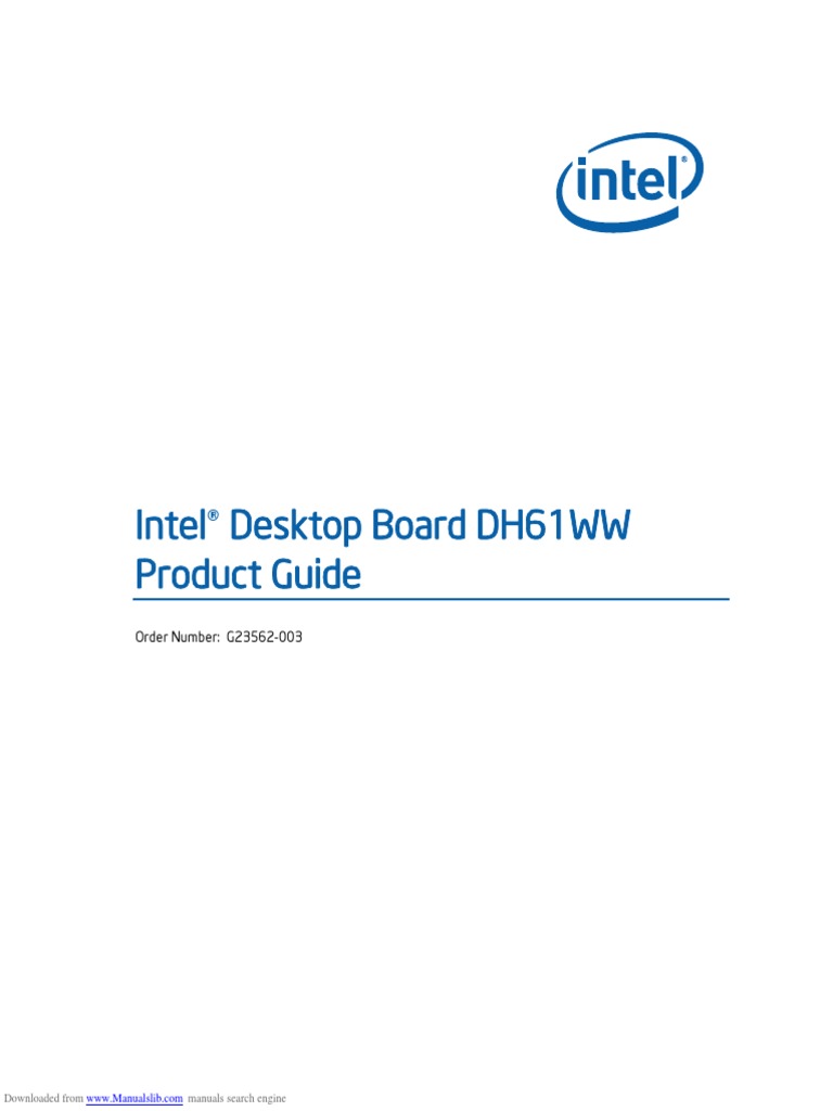 Intel® Desktop Board DH61WW Product Guide: Order Number: G23562-003