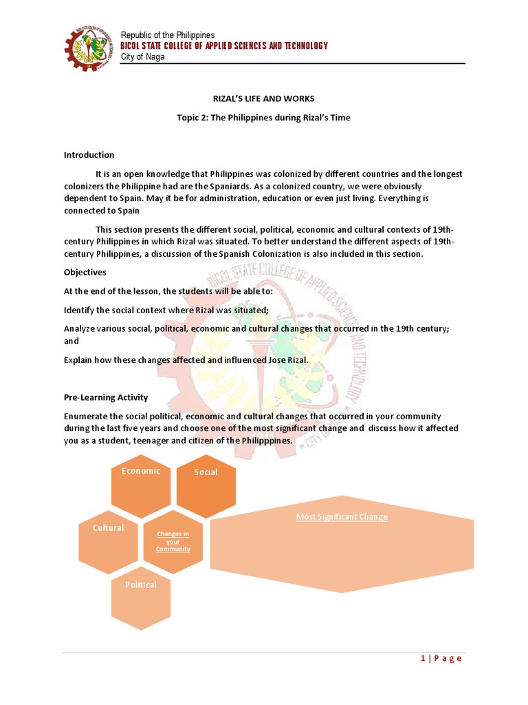 century Philippines in which Rizal was situated. To better understand the different aspects of 19th-
