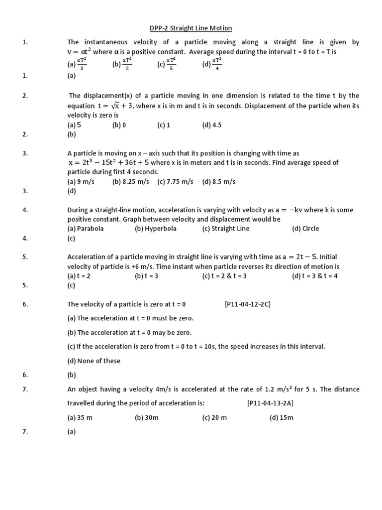 DPP-2 Straight Line Motion