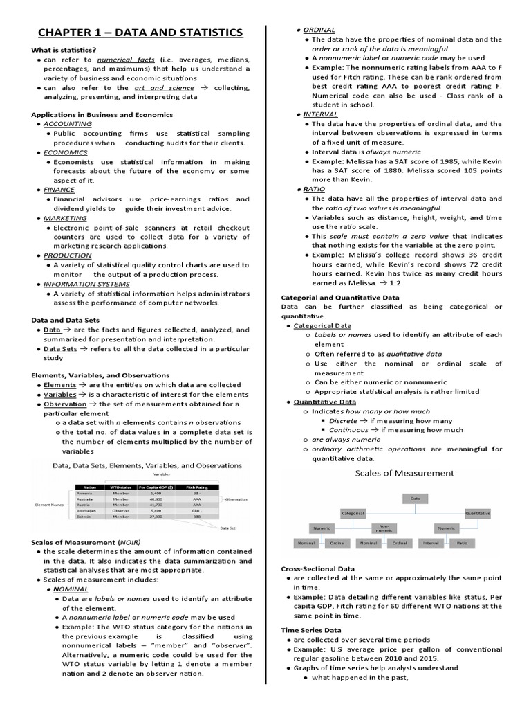 can refer to numerical facts (i.e. averages, medians, A nonnumeric label or numeric code may be used