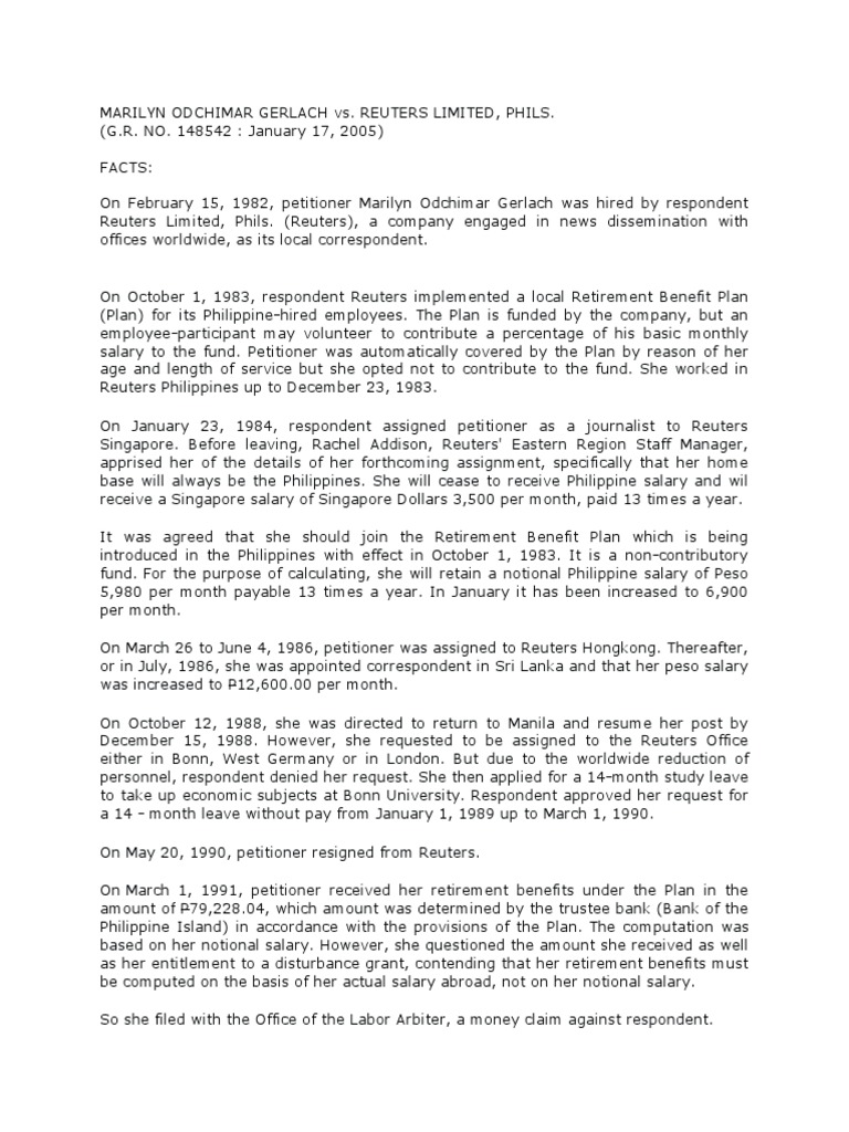 MARILYN ODCHIMAR GERLACH vs. REUTERS LIMITED, PHILS.